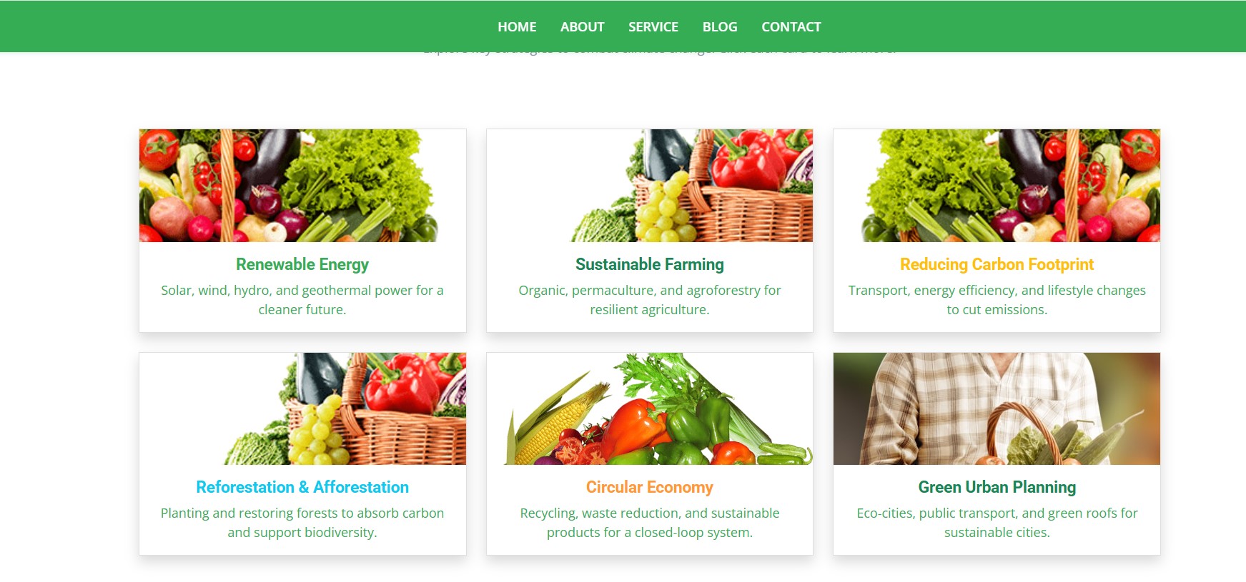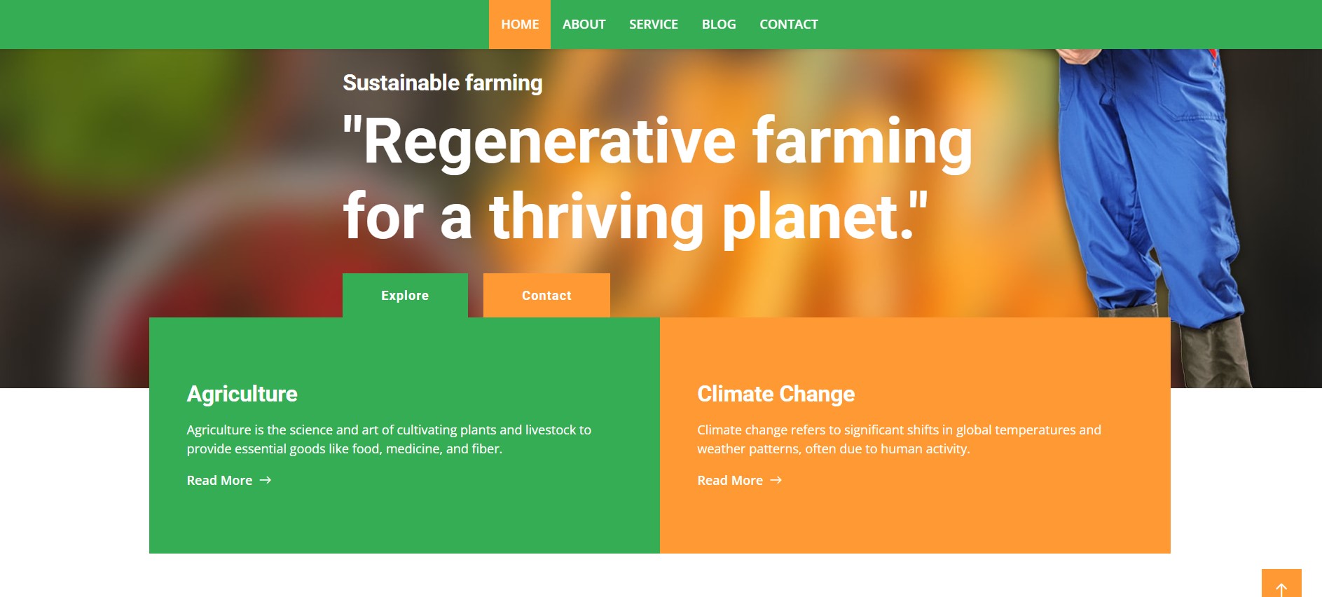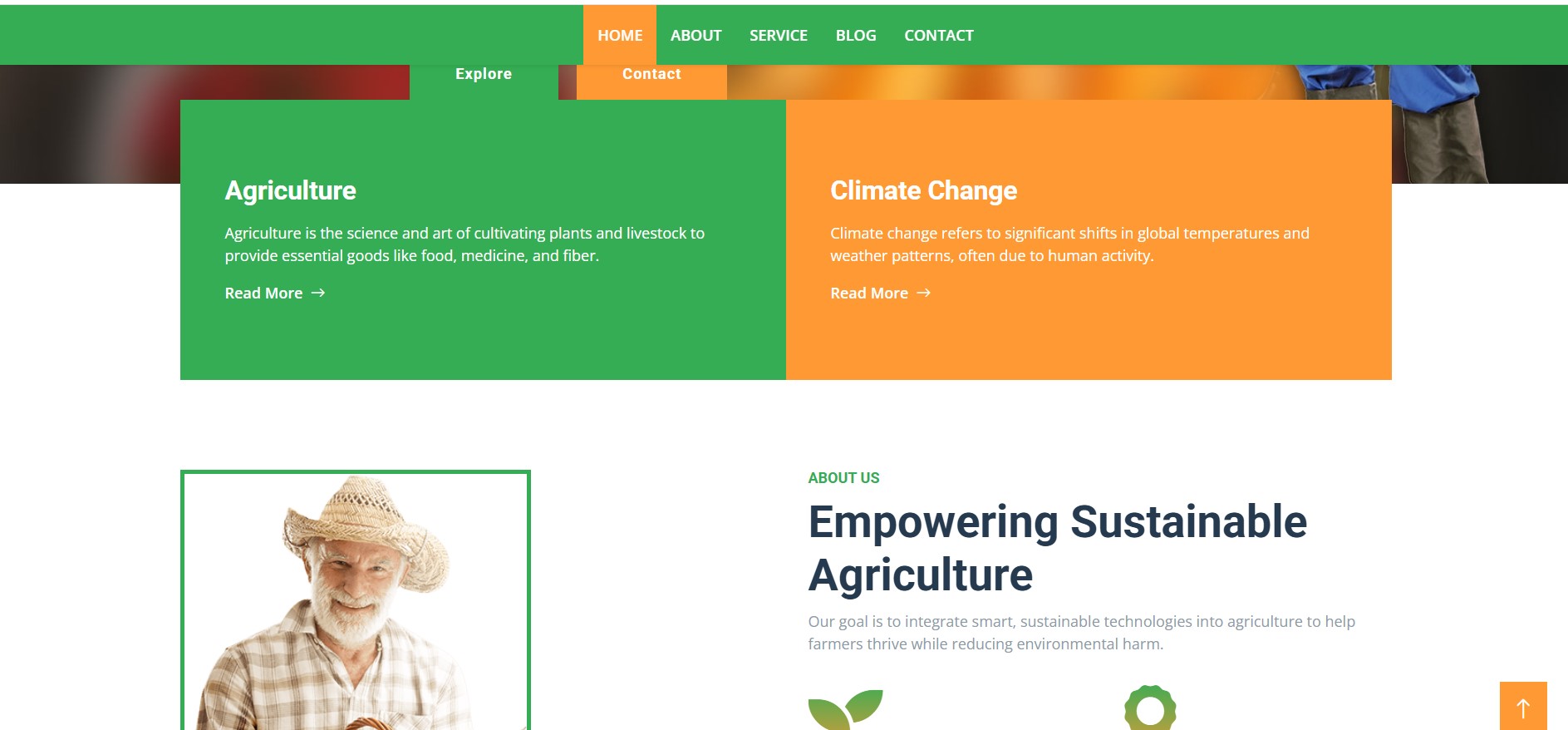 I have built this website as a comprehensive platform dedicated to promoting sustainable agriculture and environmental awareness. Through it, I provide valuable resources and information on topics such as climate change, soil health management, renewable energy, and modern farming techniques. The site features interactive educational content, blog posts managed by an admin panel, and user-friendly navigation designed for both general users and administrators. With sections like About, Services, Blog, and specialized pages for climate solutions and soil management, I aim to empower farmers, students, and the general public to adopt eco-friendly practices and stay informed about the latest developments in sustainable agriculture and environmental stewardship.
